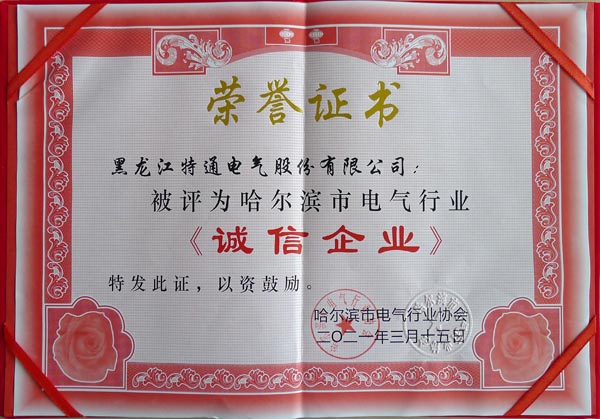 為了推動行業(yè)誠信體系建設,維護行業(yè)信譽,提高企業(yè)知名度,不斷提升行業(yè)產品質量水平,為廣大用戶和消費者提供滿意的服務,為此對我市電氣行業(yè)已獲得《誠信企業(yè)》光榮稱號的企業(yè),按規(guī)定要求進行了認真復評審核,通過企業(yè)自查和行業(yè)評定,通過了復評審核,保持了榮譽稱號。特通電氣成為獲此殊榮的復評合格企業(yè)。