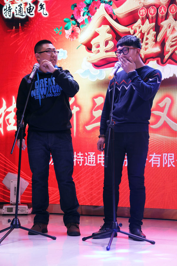 接下來(lái),年會(huì)表演正式開(kāi)始,特通員工載歌載舞、歡聲笑語(yǔ)中品嘗著2016一年來(lái)的用辛勤汗水澆灌出來(lái)的碩果,大家一起舉杯,共同祝賀特通電氣一年來(lái)取得的成績(jī),同時(shí)祝愿特通電氣2017年大展宏圖,創(chuàng)造出更美好的未來(lái)。