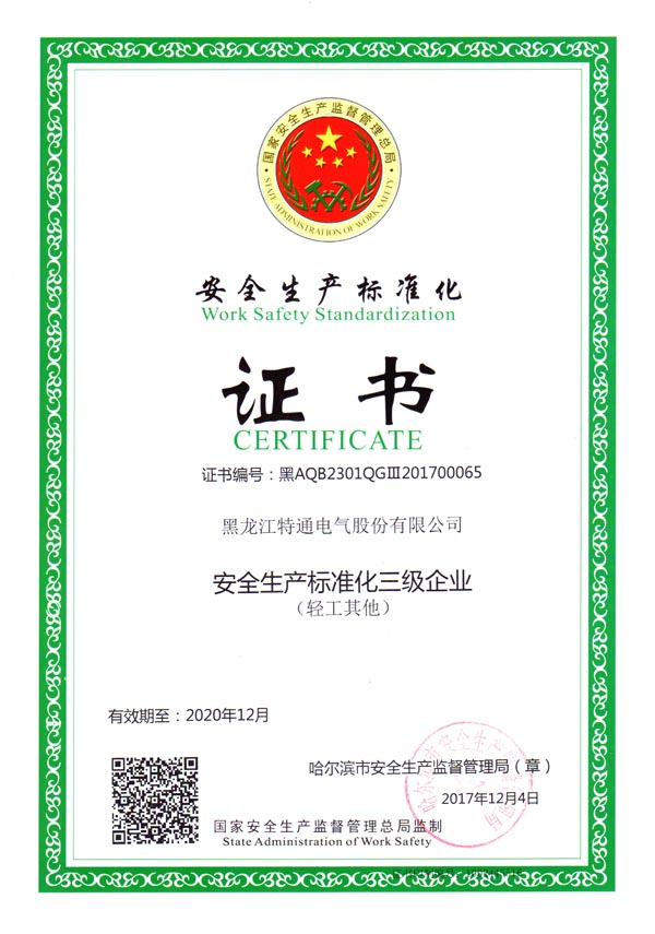 安全生產(chǎn)標(biāo)準(zhǔn)化助推特通電氣快速發(fā)展